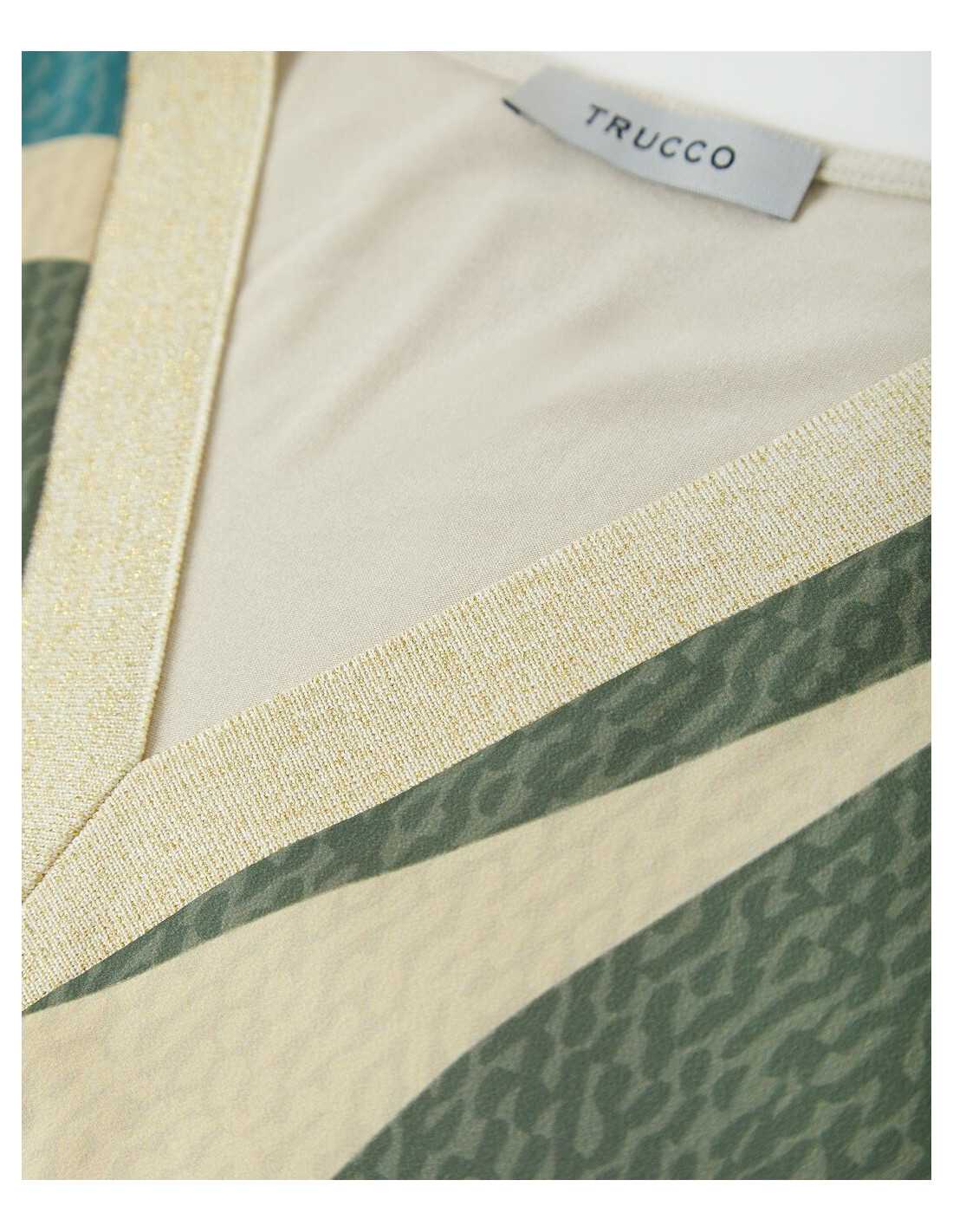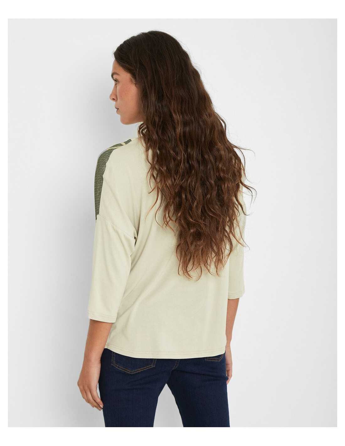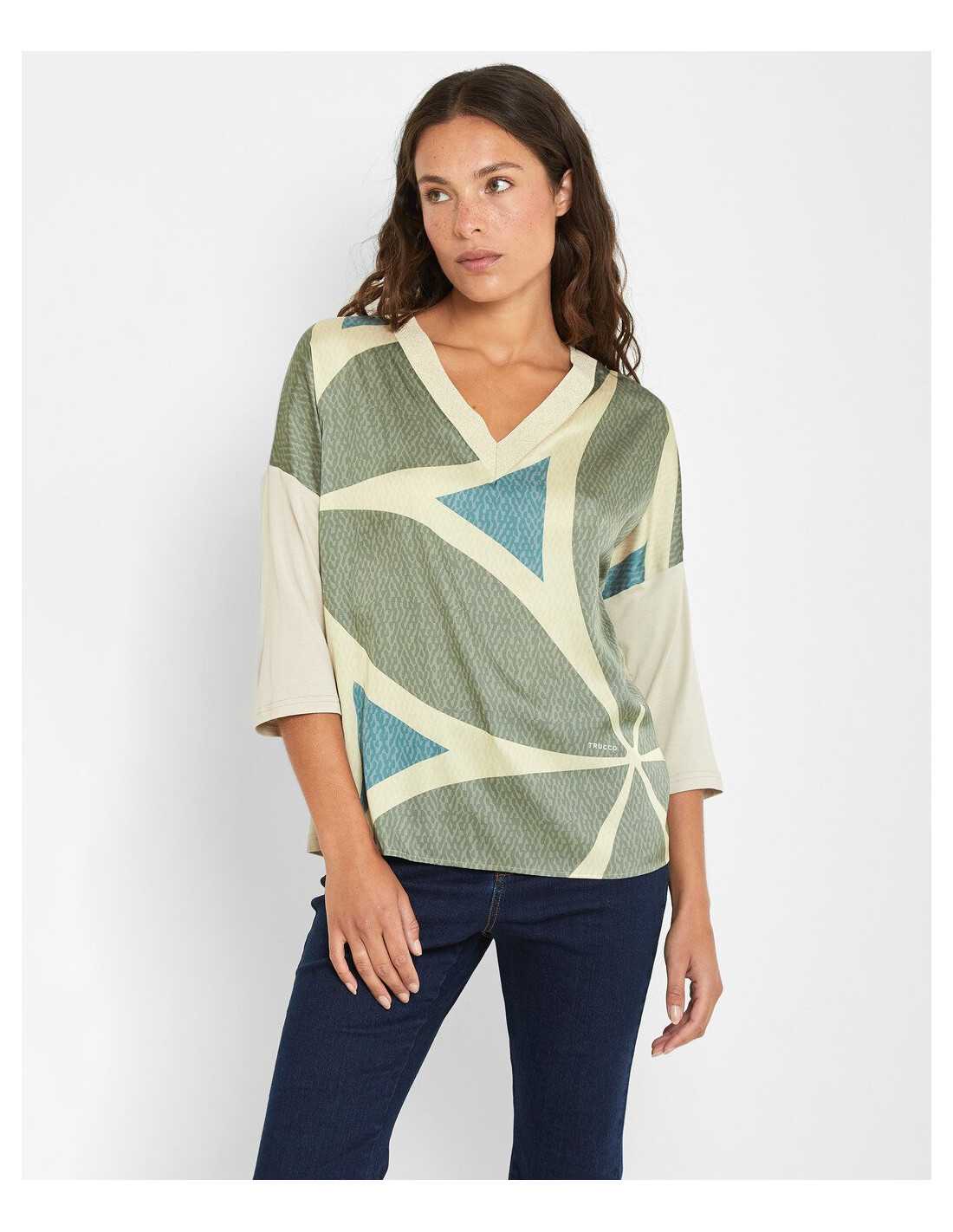Camiseta estampada de manga francesa y cuello en pico.