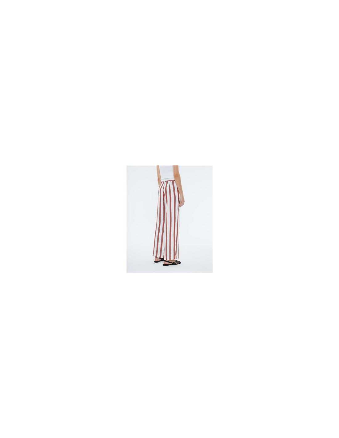 Pantalón ancho, estampado rayas, tiro alto.
