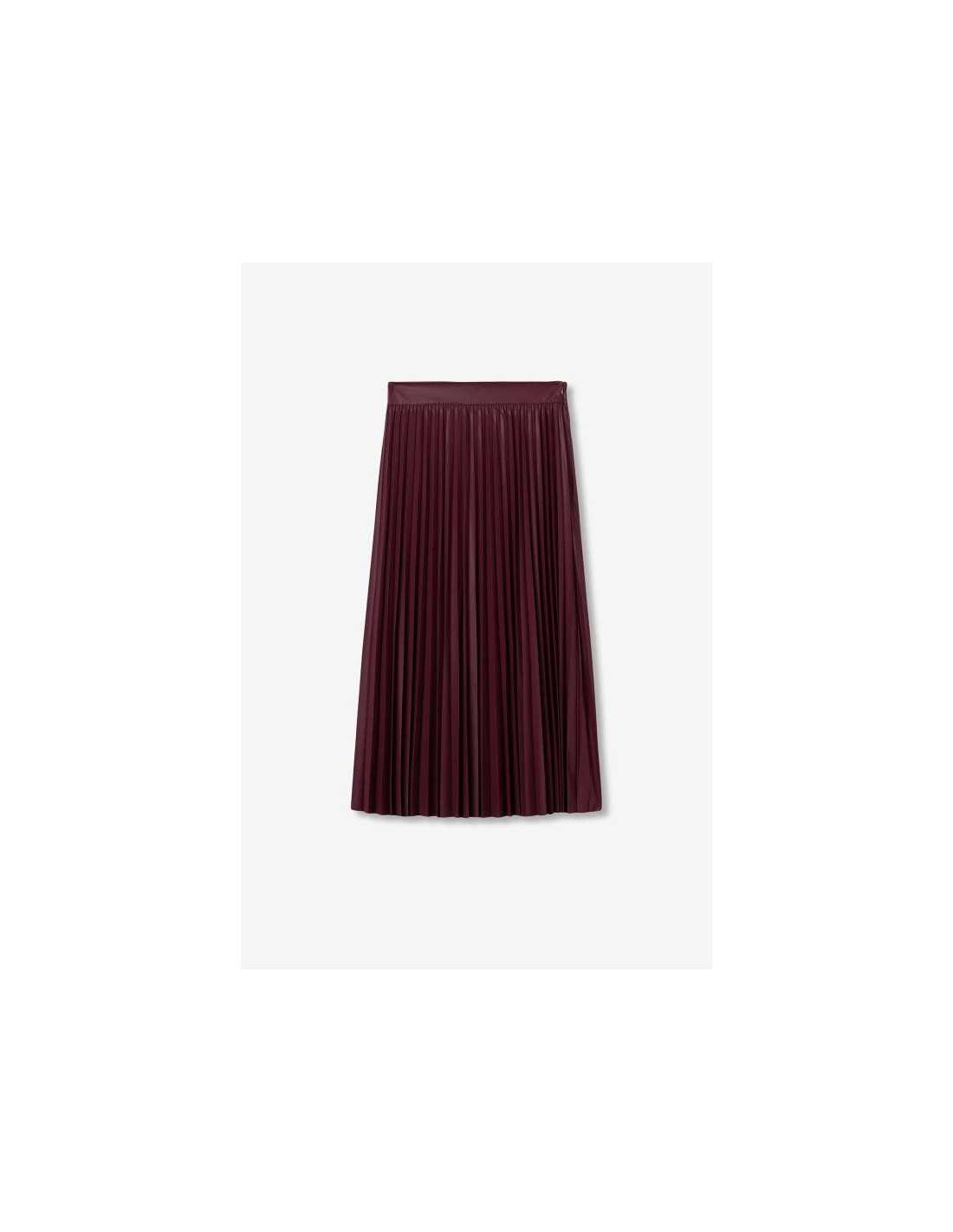 Falda midi plisada efecto piel, con cierre de cremallera lateral.