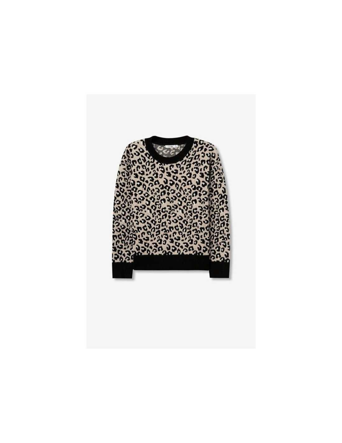 Jersey relaxed fit de Jacquard con estampado animal, cuello redondo, manga larga y acabados de canalé.