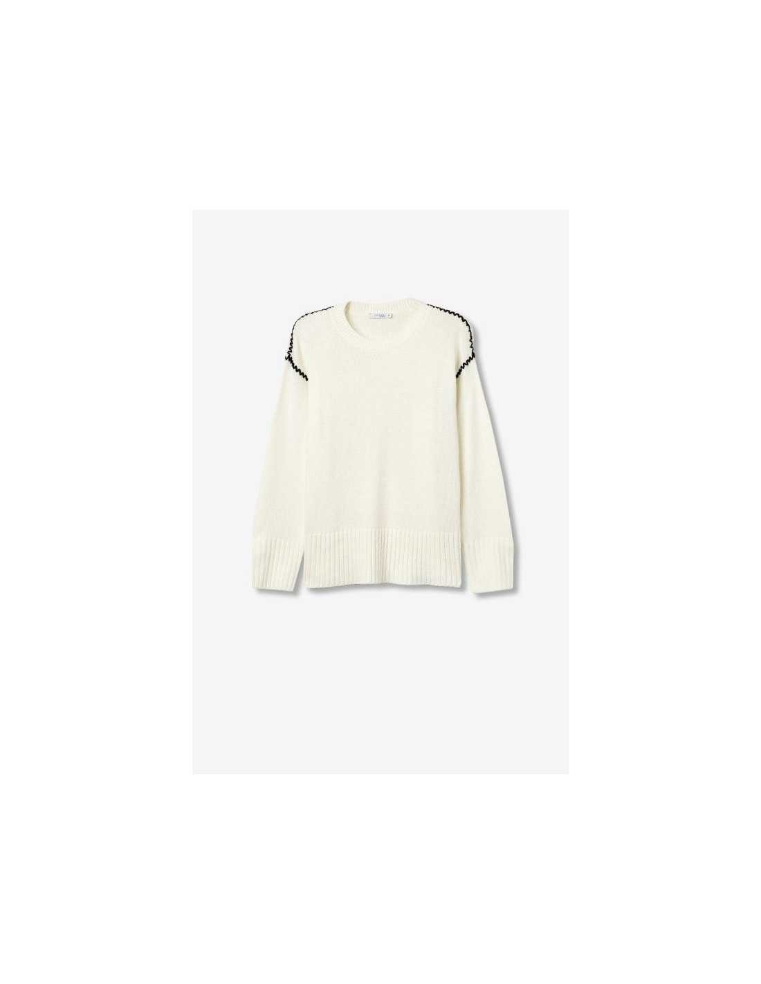 Jersey de manga larga con bordado en zigzag en hombros y costuras. Cuello redondo. Puños y bajo en rib.
