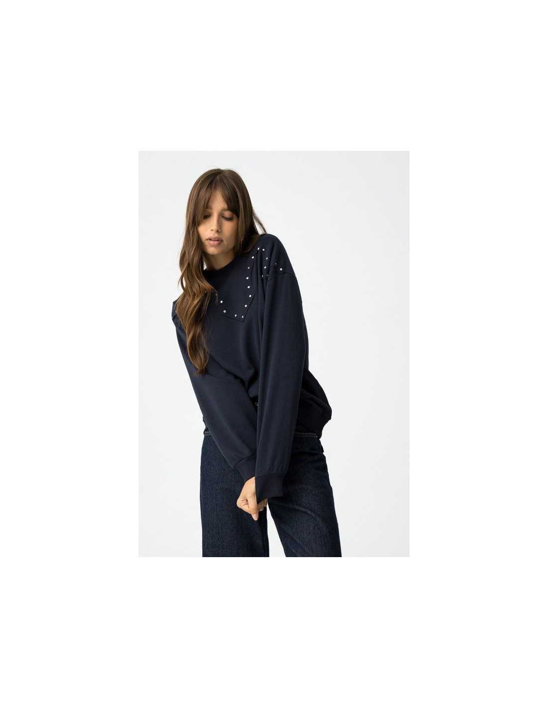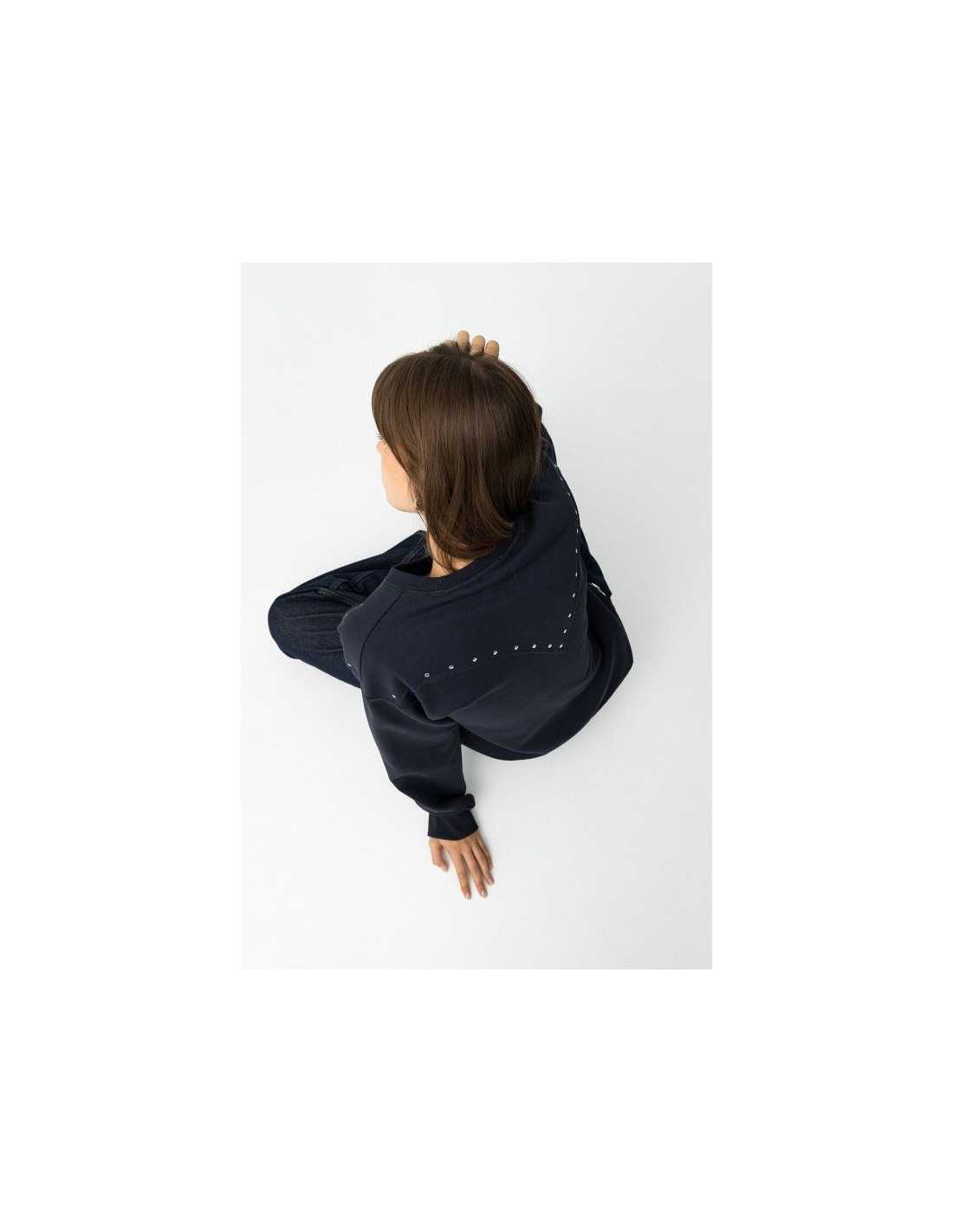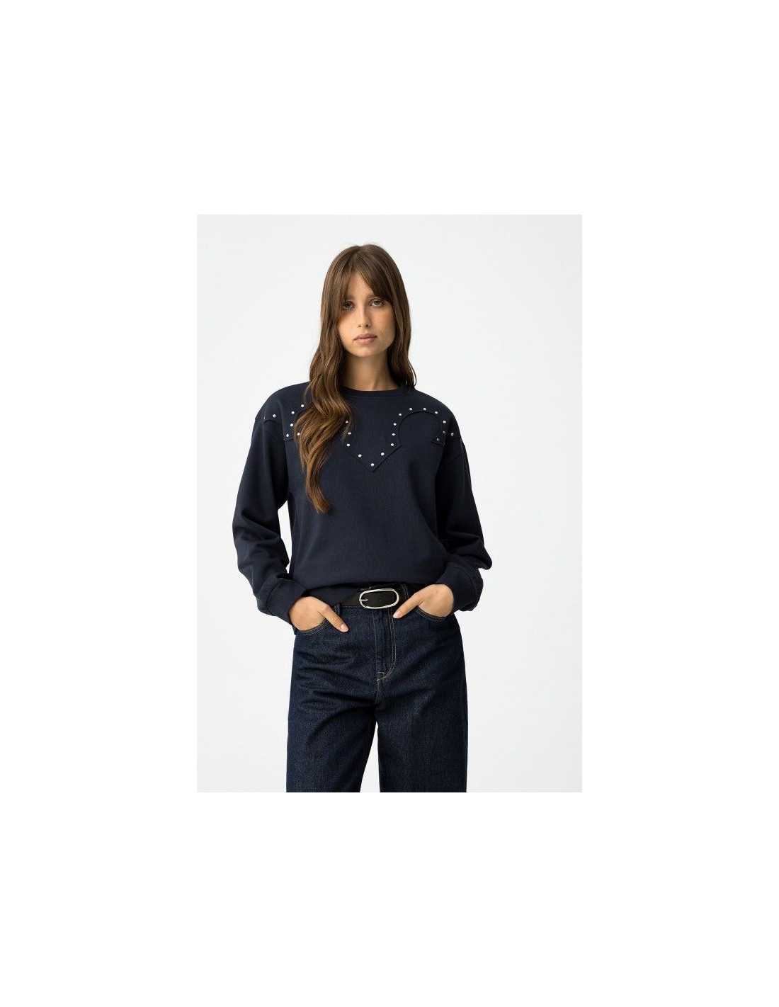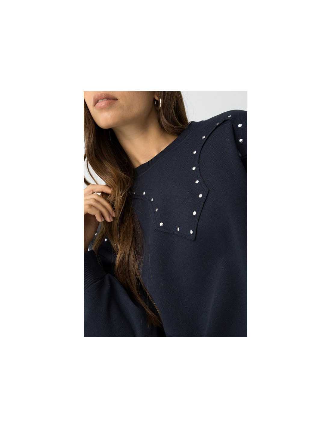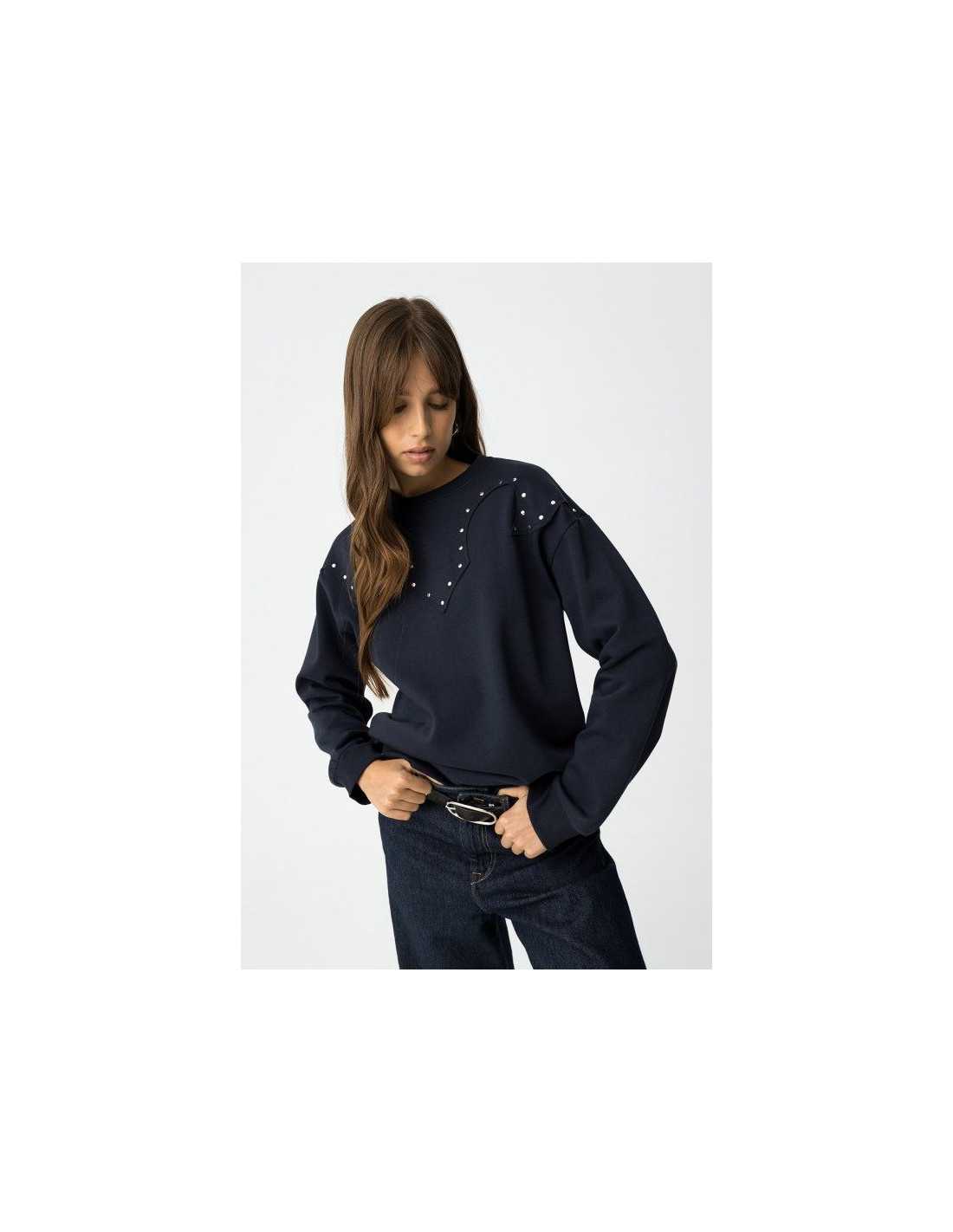 Sudadera regular fit con detalle en relieve y apliques metálicos. Escote redondo, manga larga y acabados en canalé. Interior afelpado.