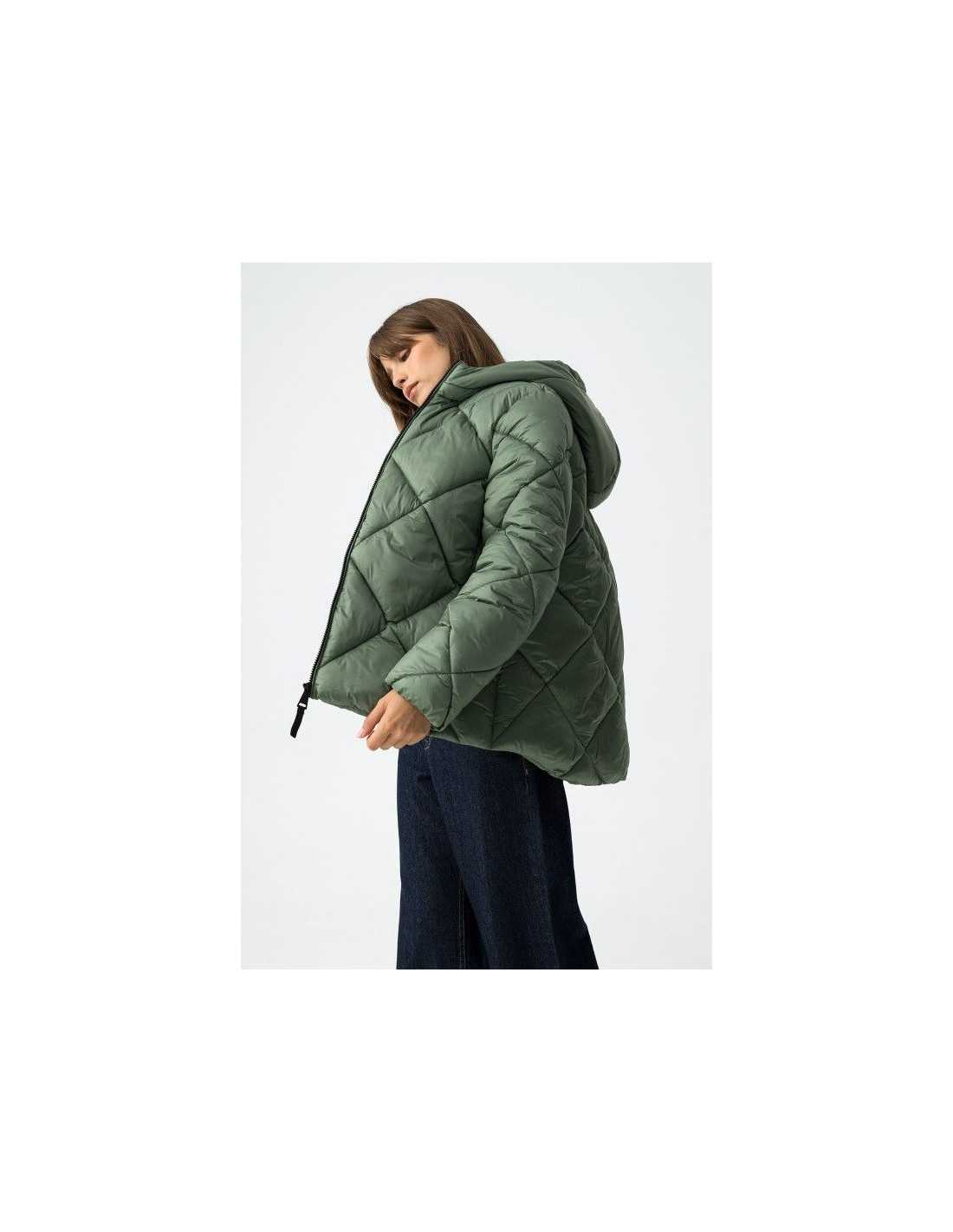 Cazadora acolchada relaxed fit, con dos bolsillos frontales y cierre de cremallera. Capucha y manga larga con elástico en los puños.