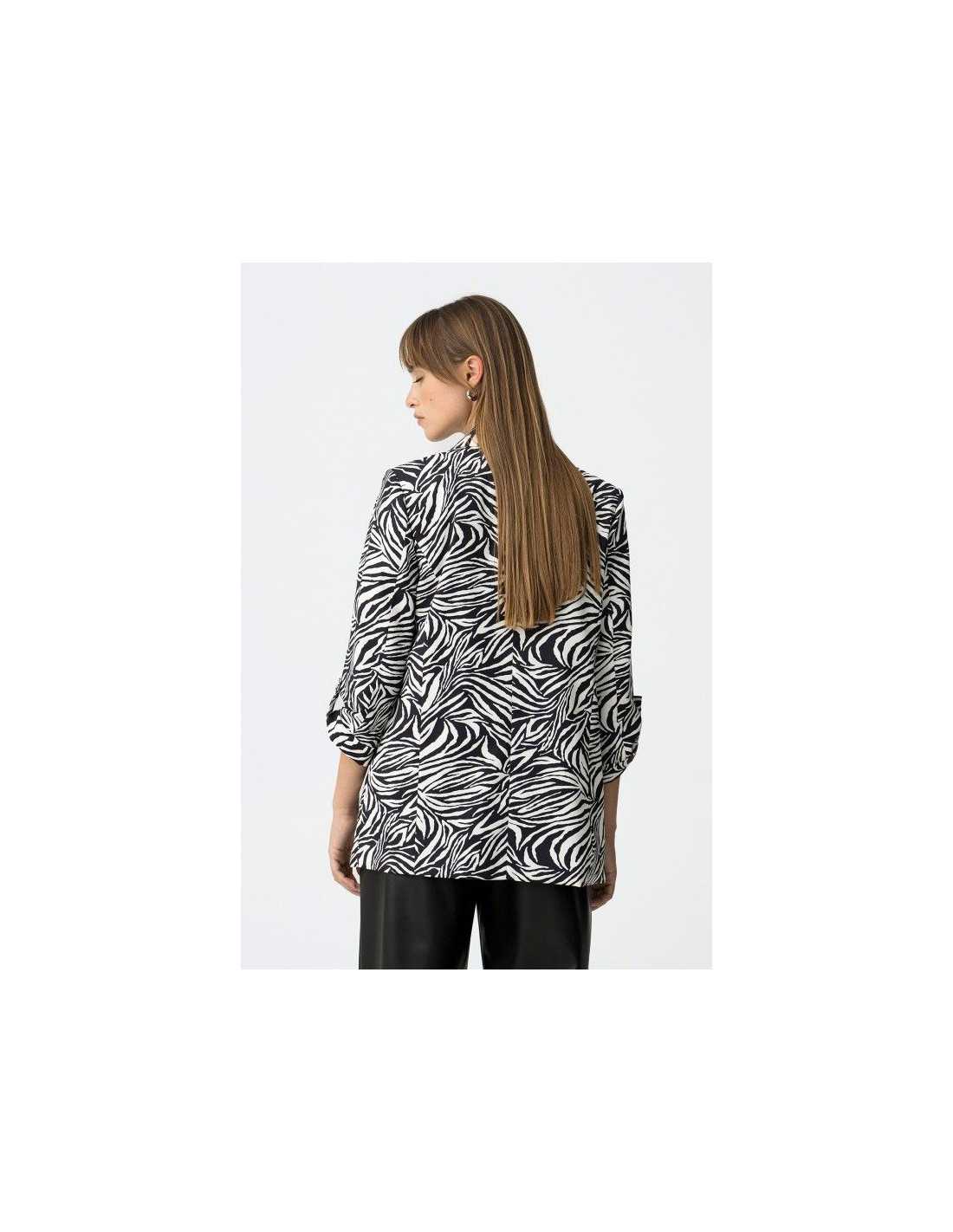 Blazer regular fit con dos bolsillos con solapa, solapa con muesca, apertura frontal y manga larga con botón metálico.