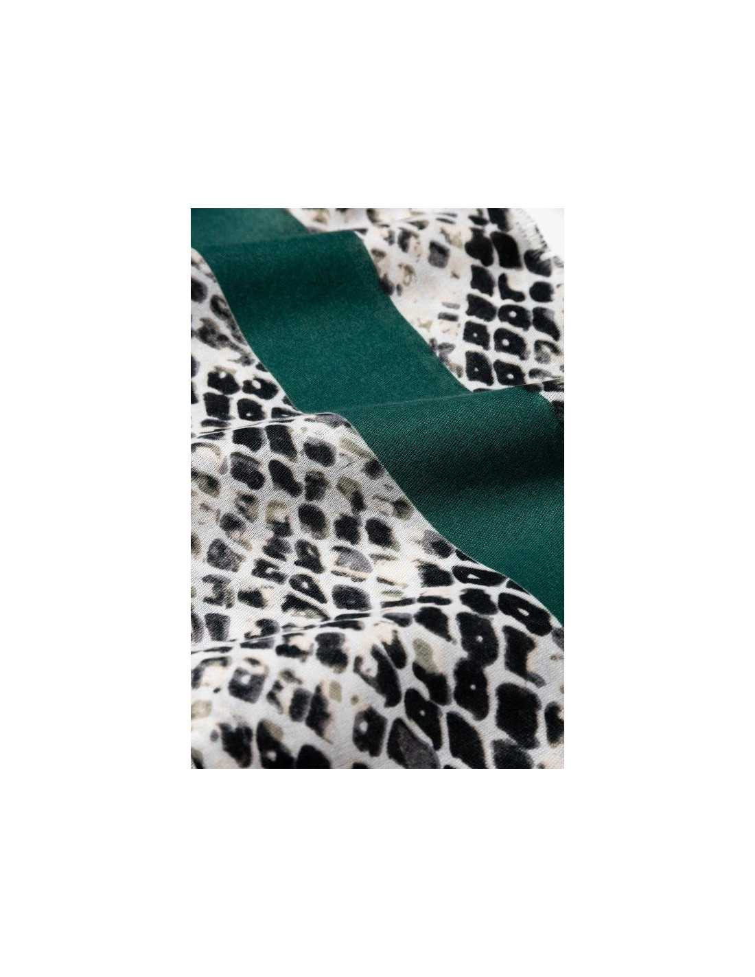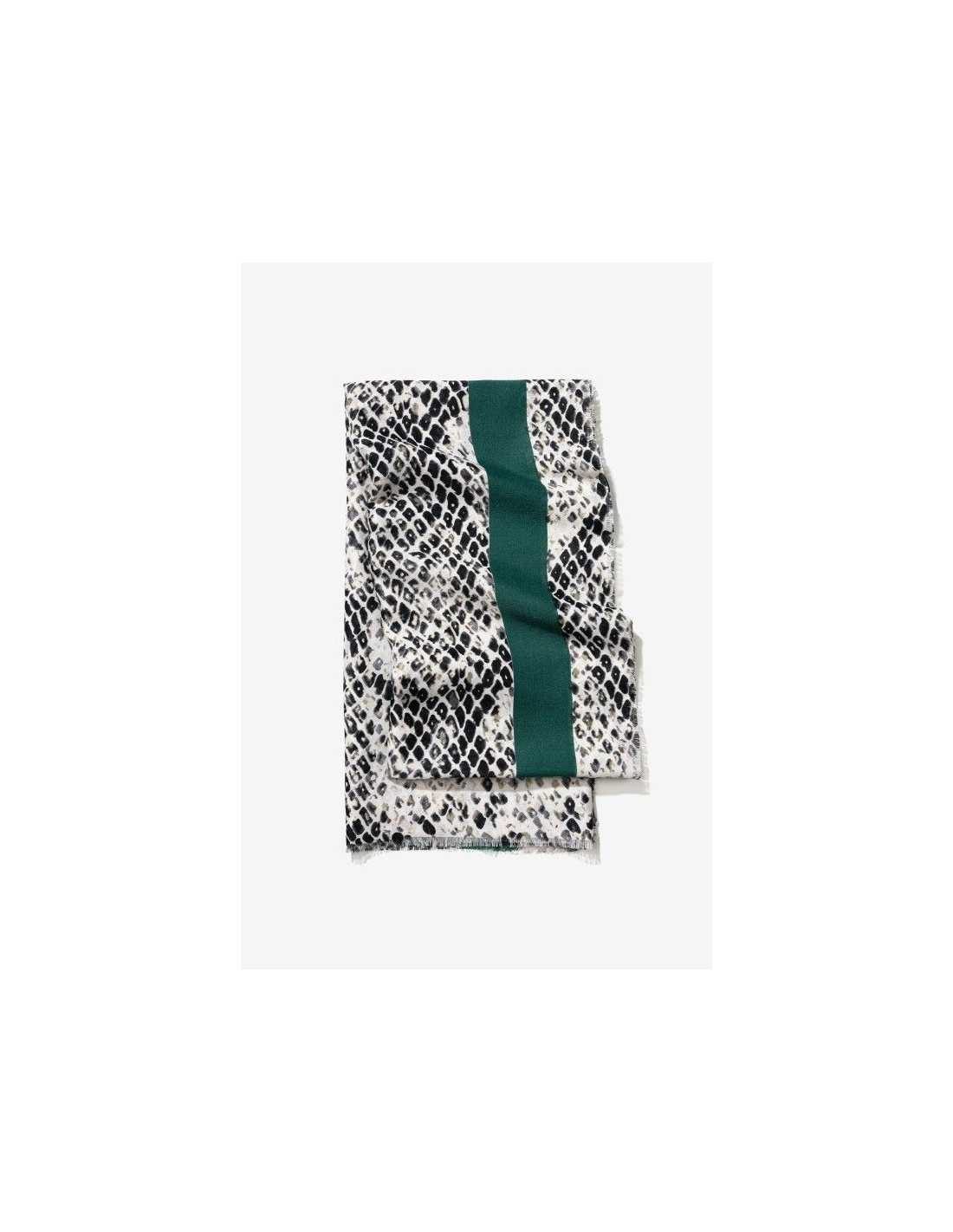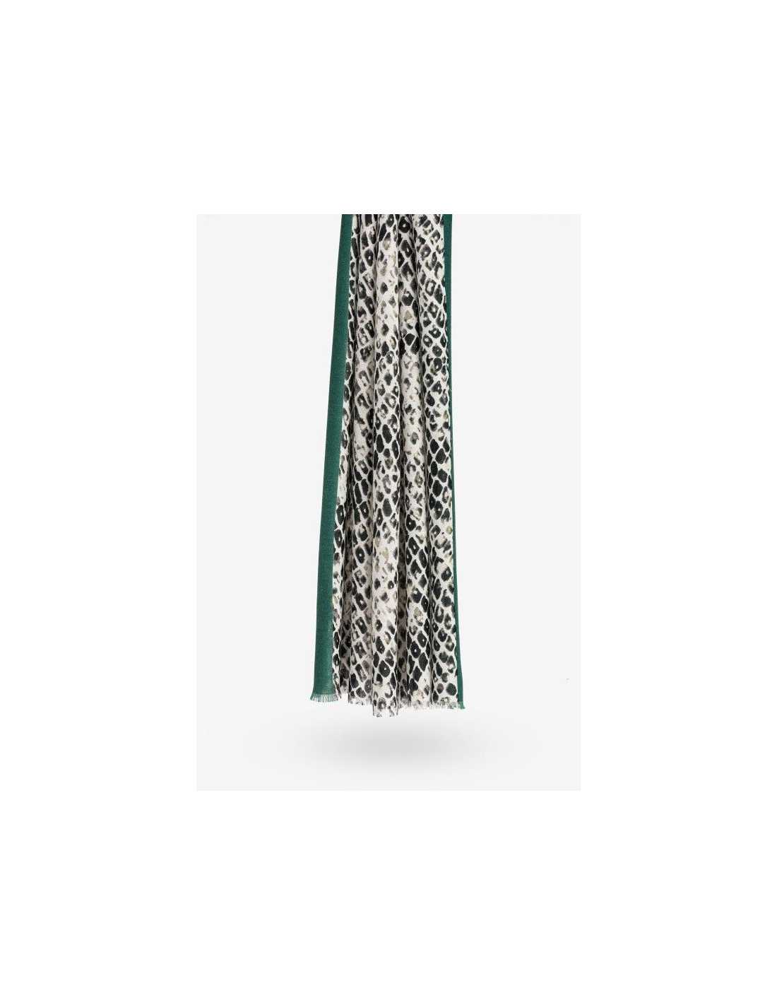 Pañuelo rectangular con estampado de serpiente y acabado deshilachado.