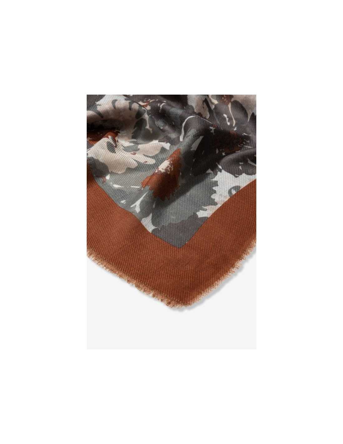 Pañuelo estampado flores rectangular y bajo deshilachado.