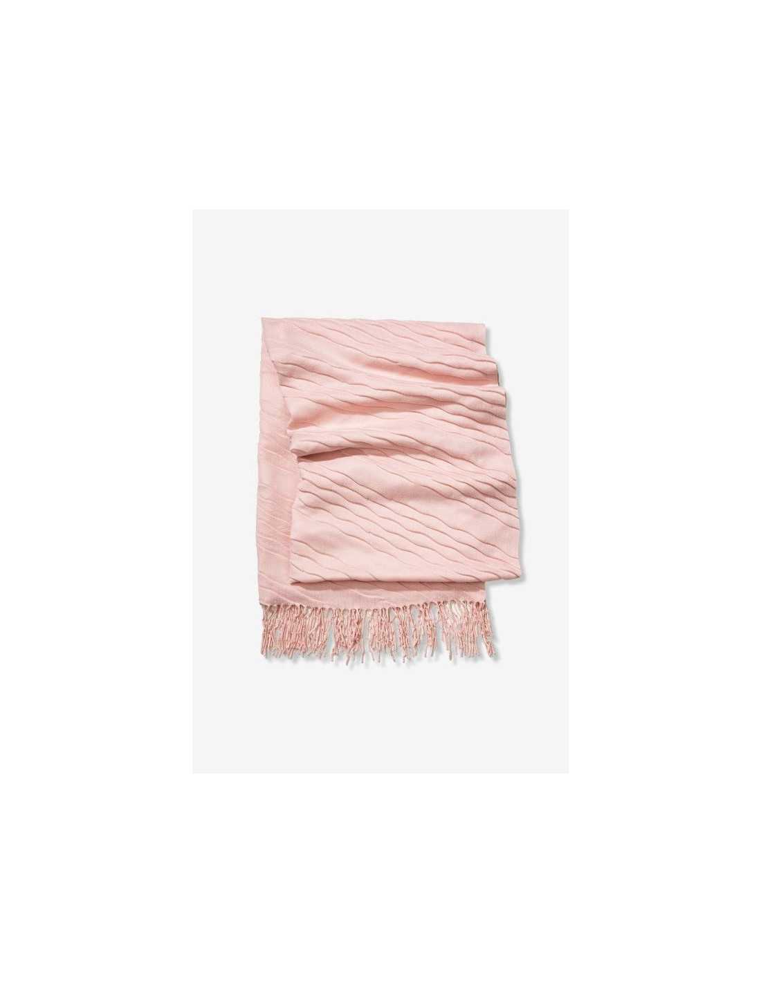 Bufanda lisa plisada y bajo con flecos.