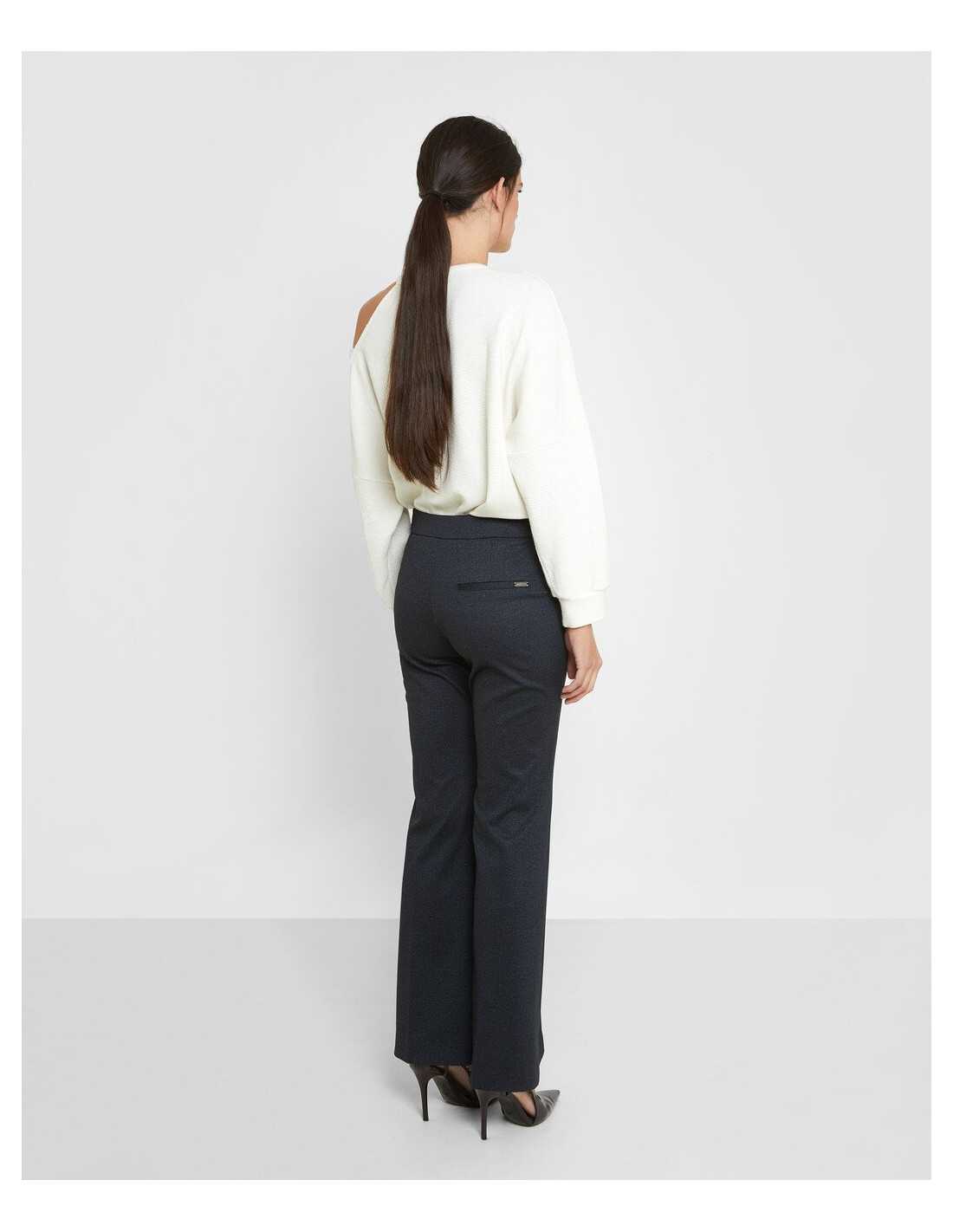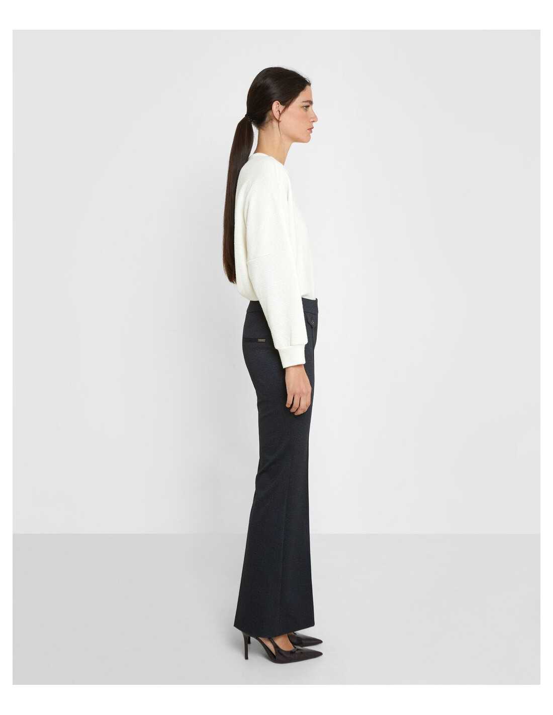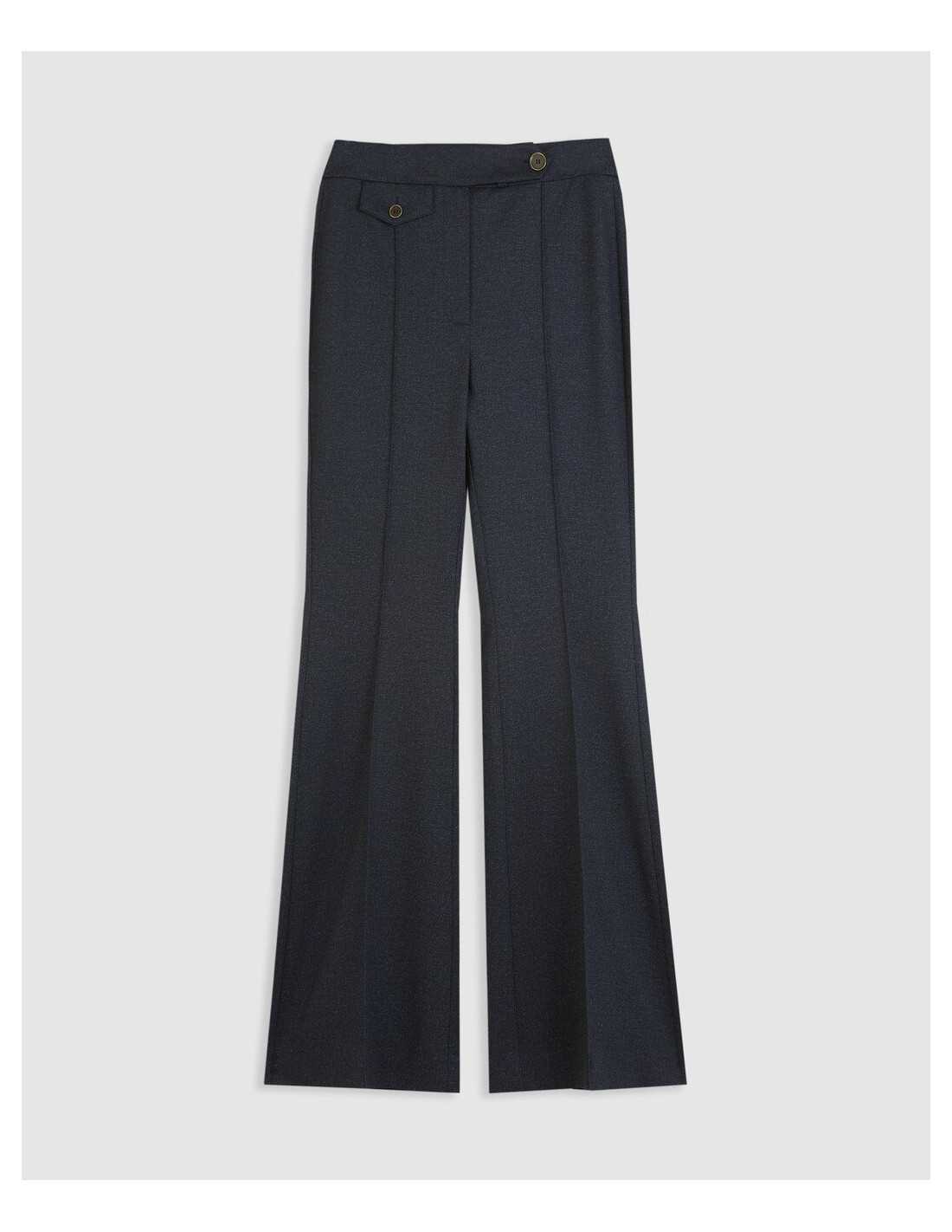 Pantalón de pinzas. Cierre de botón. Falso bolsillo con botón.