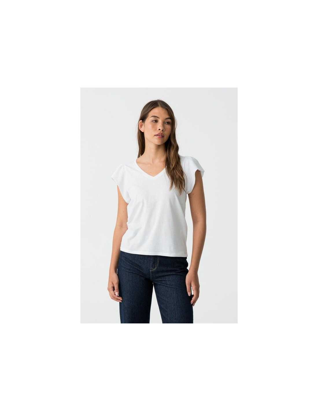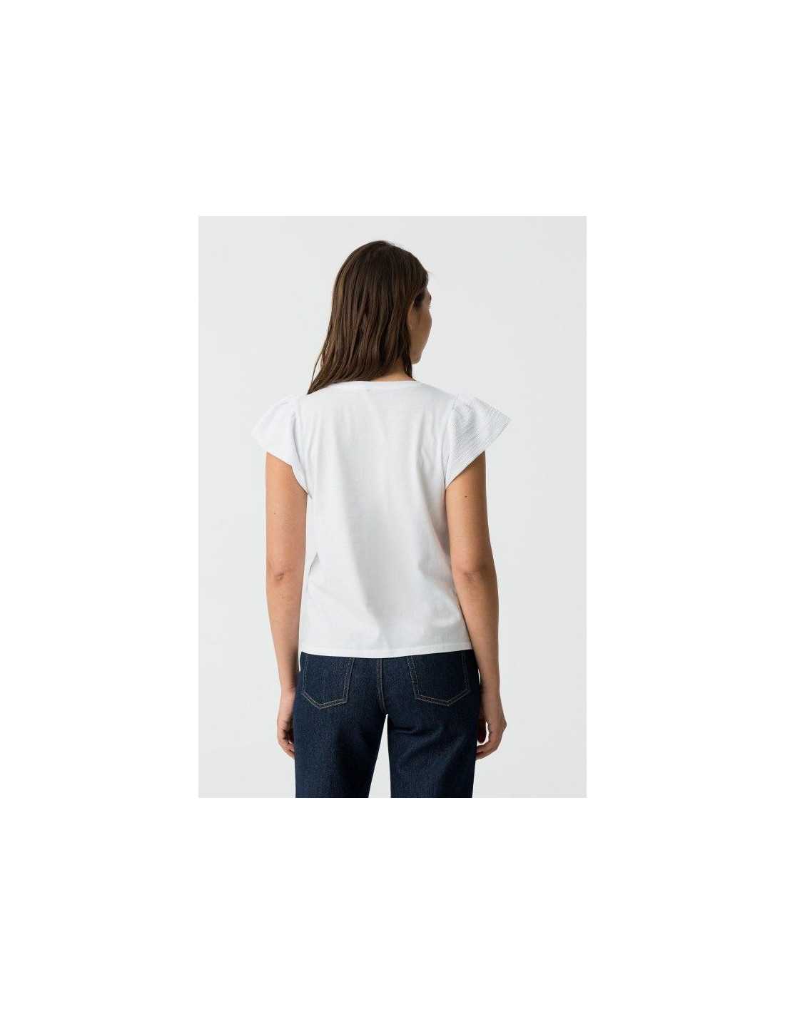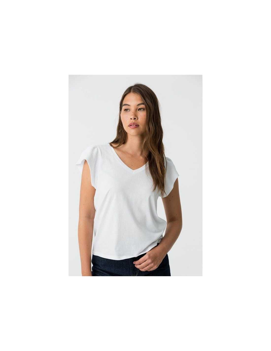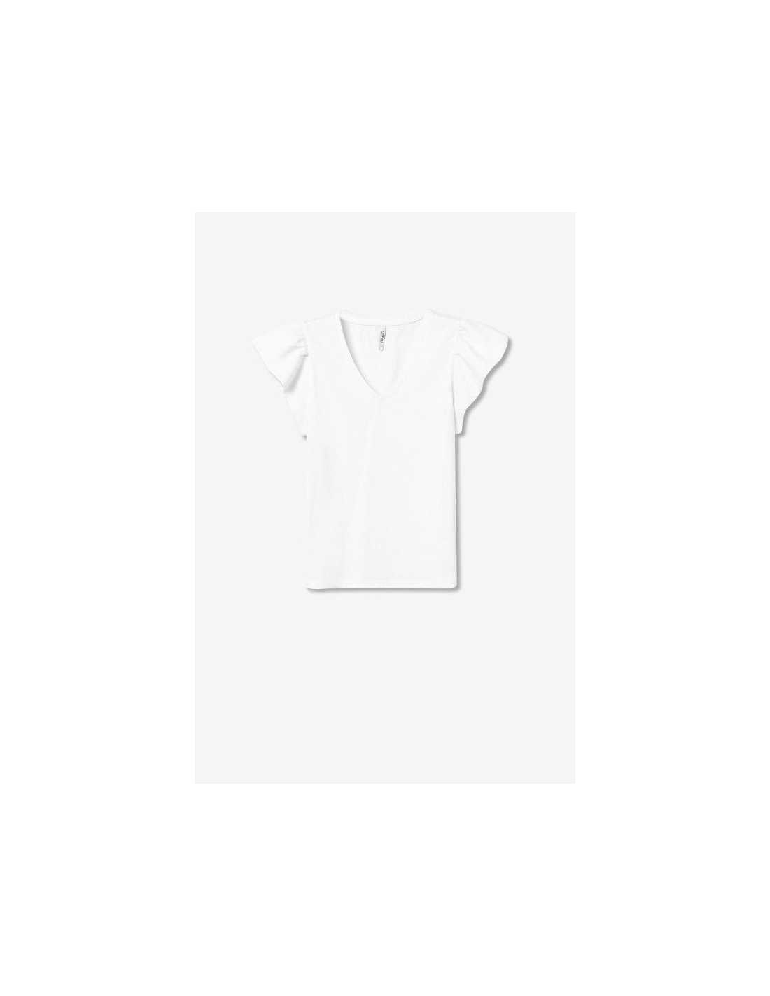 Camiseta básica de cuello redondo, manga corta y volantes.