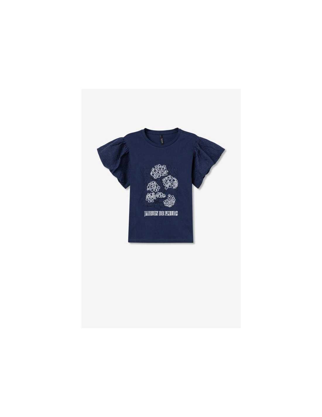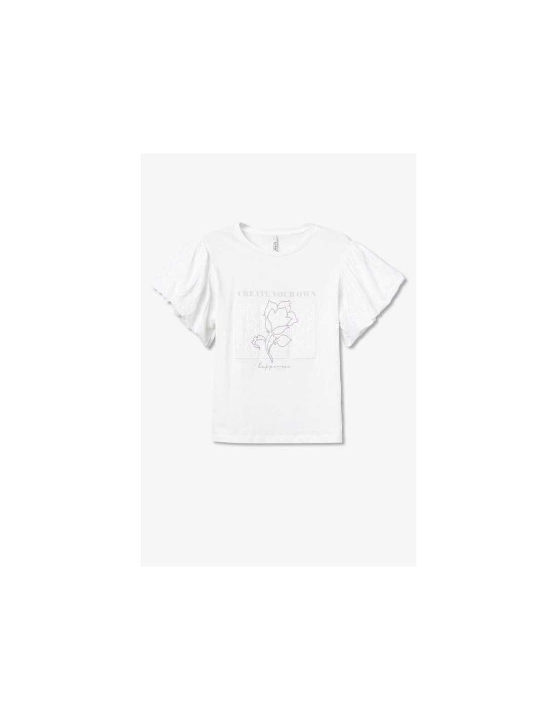 Camiseta de cuello redondo y manga corta con bordado inglés. Bordado y aplicación frontal.