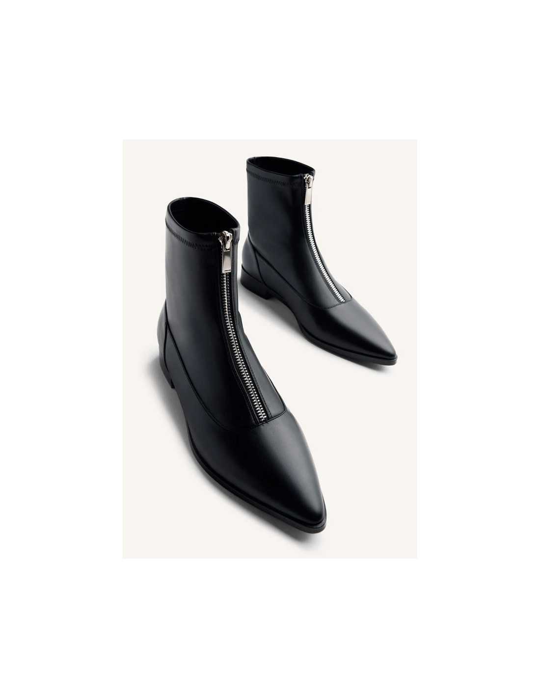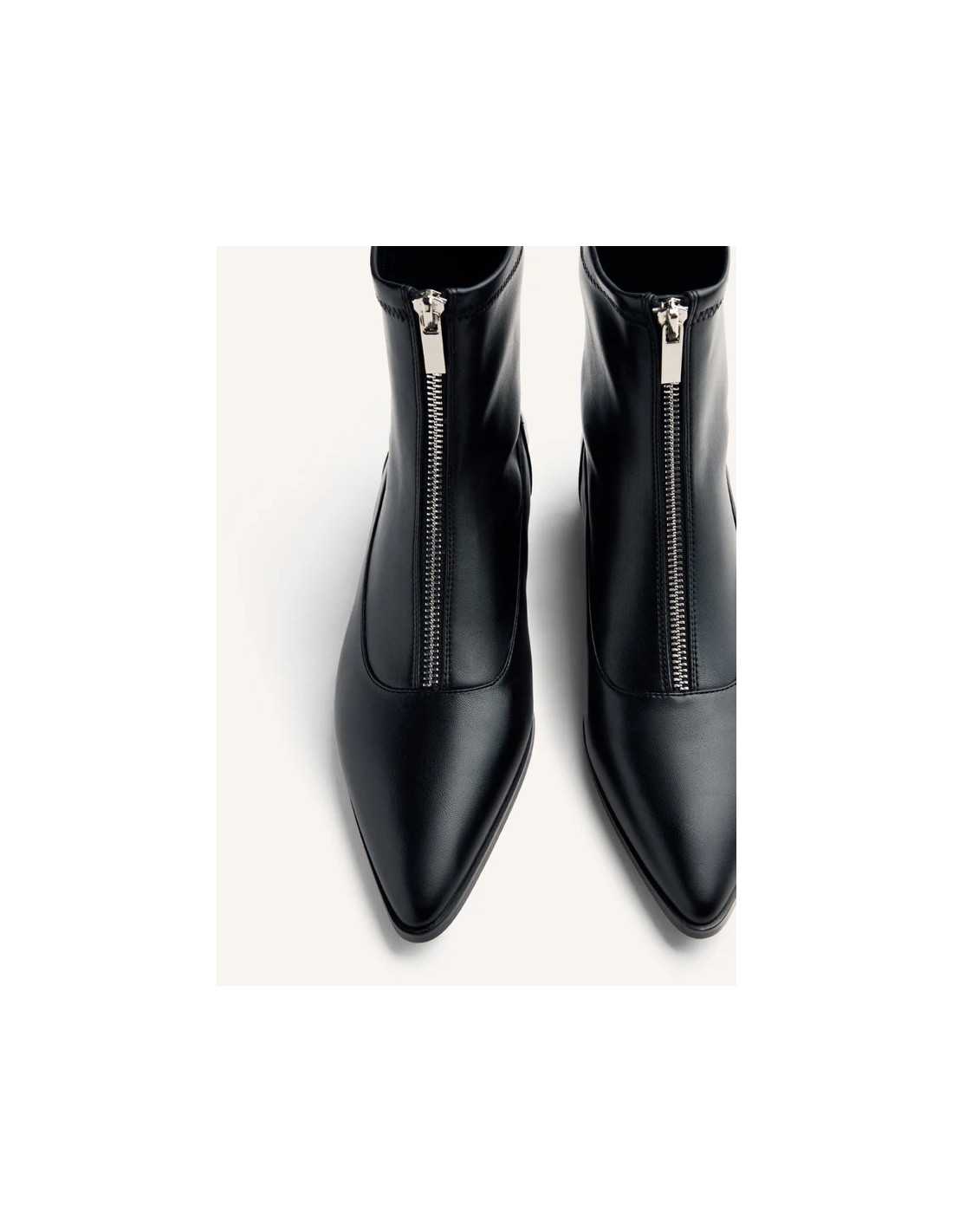 Botines con cremallera frontal. Cuentan con plantilla acolchada y punta afilada. Este modelo destaca por su suavidad y elasticidad.